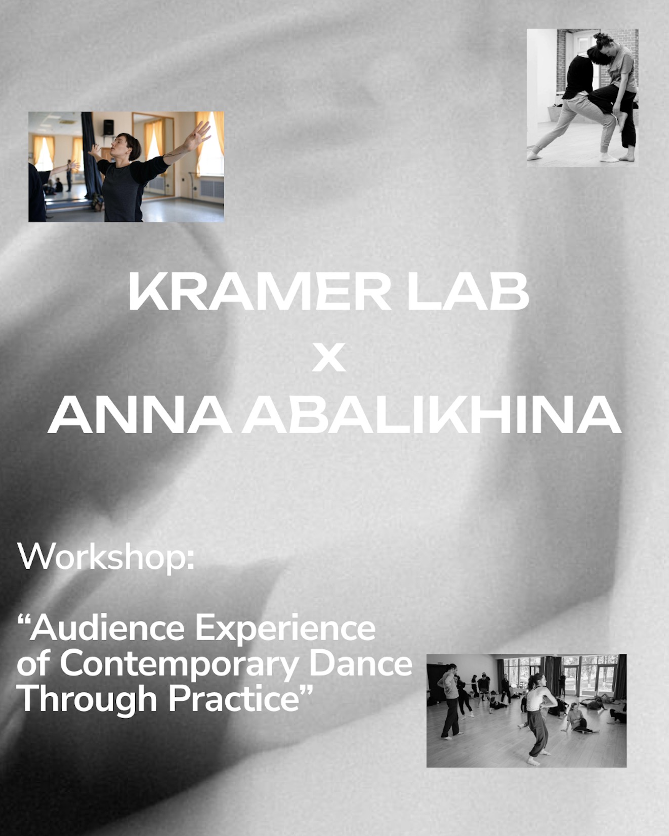 Anna Abalikhina — choreographer, director, teacher, performer — will lead an original workshop exploring how contemporary dance emerges from attention to the body, movement, and inner impulse.